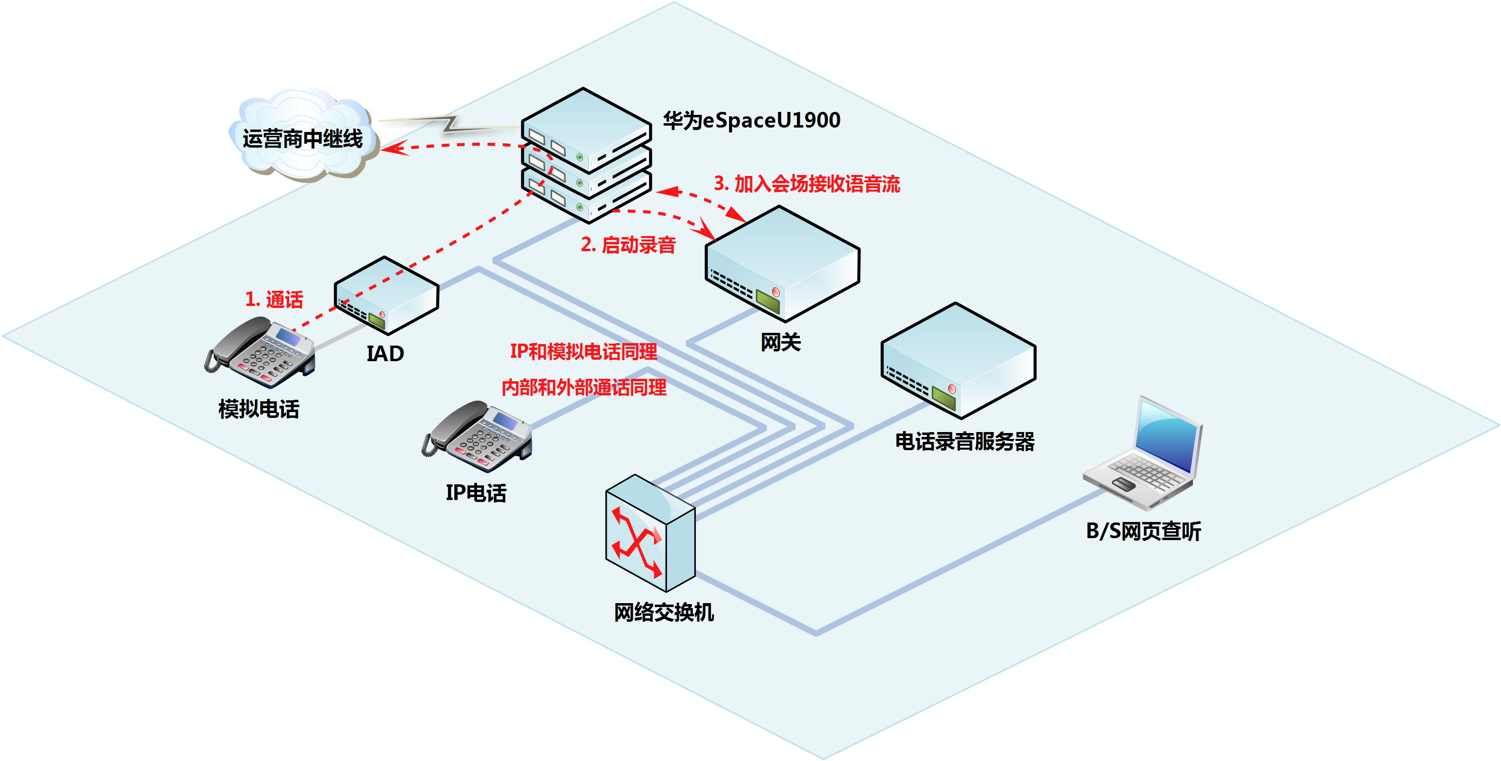 產(chǎn)品概述 ● 會議式錄音,內(nèi)外線均可錄制 ● 網(wǎng)絡(luò)架構(gòu)不受限制,無需鏡像抓包 ● 錄音分機(jī)/中繼類型不限 ● 無需購買工控機(jī)及語音卡 ● SIP中繼對接,通訊穩(wěn)定并發(fā)量大 ● 支持B/S網(wǎng)頁錄音查聽,多條件查詢...