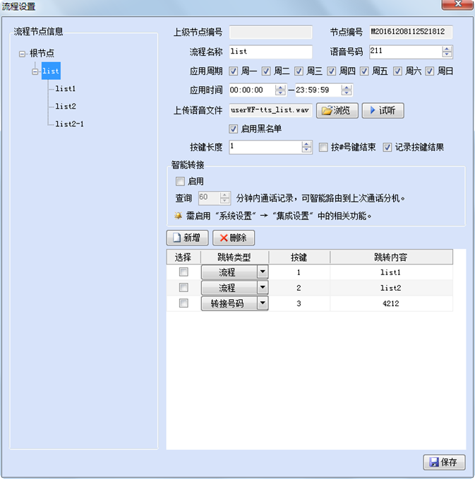 產(chǎn)品概述 ● 外部電話呼入,可智能轉(zhuǎn)接到上次通話的分機(jī) ● 前臺客戶端可來電彈屏、黑名單客戶管理 ● 能與客戶業(yè)務(wù)系統(tǒng)集成,數(shù)據(jù)實時交互 ● 支持SIP中繼對接,通訊穩(wěn)定,且并發(fā)量大 軟件界面 流程設(shè)置 來電彈屏 呼入記錄...