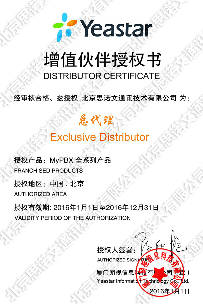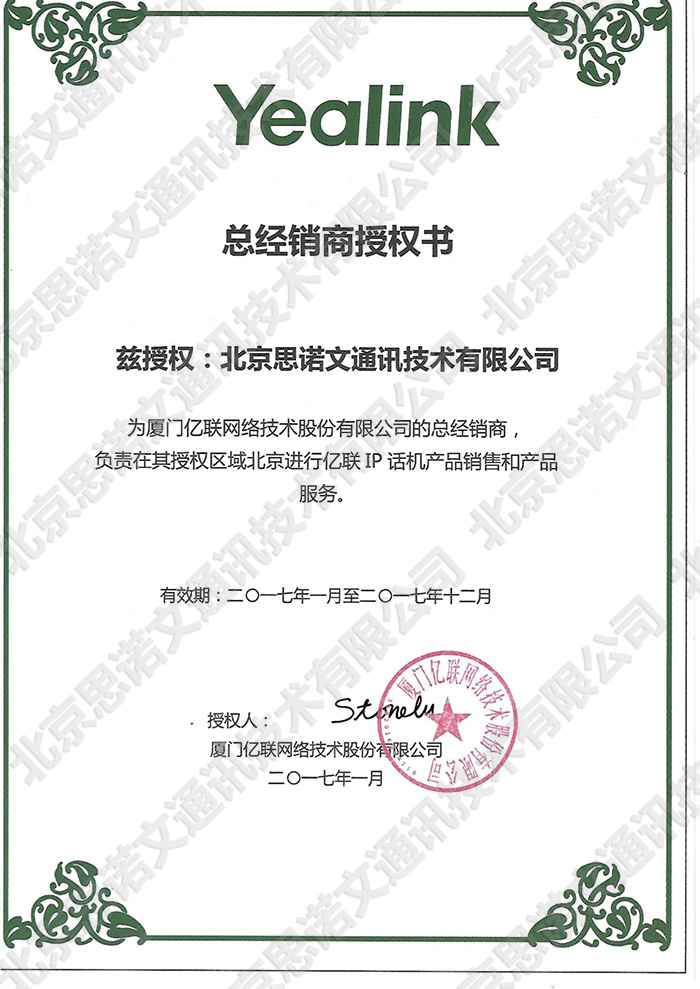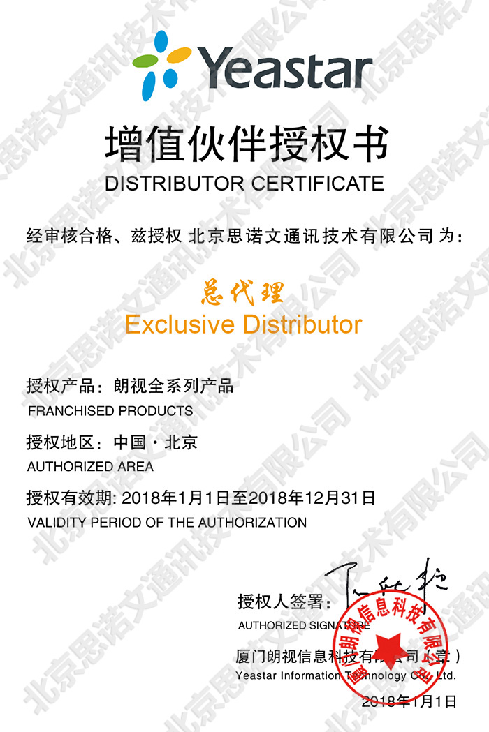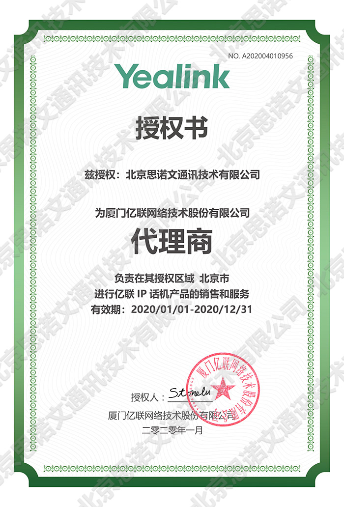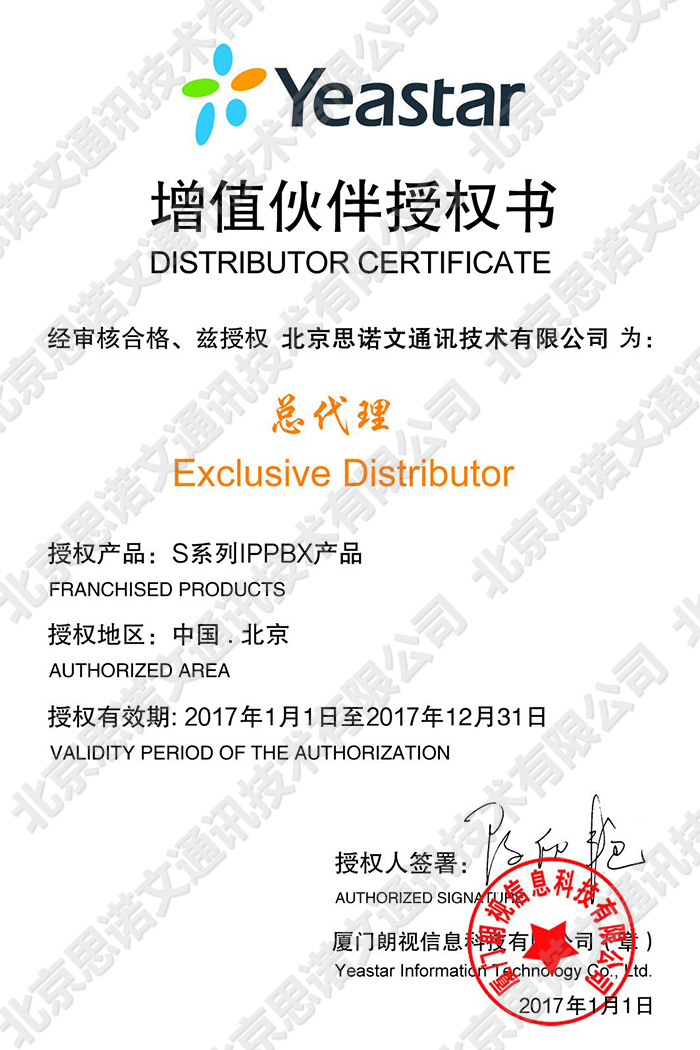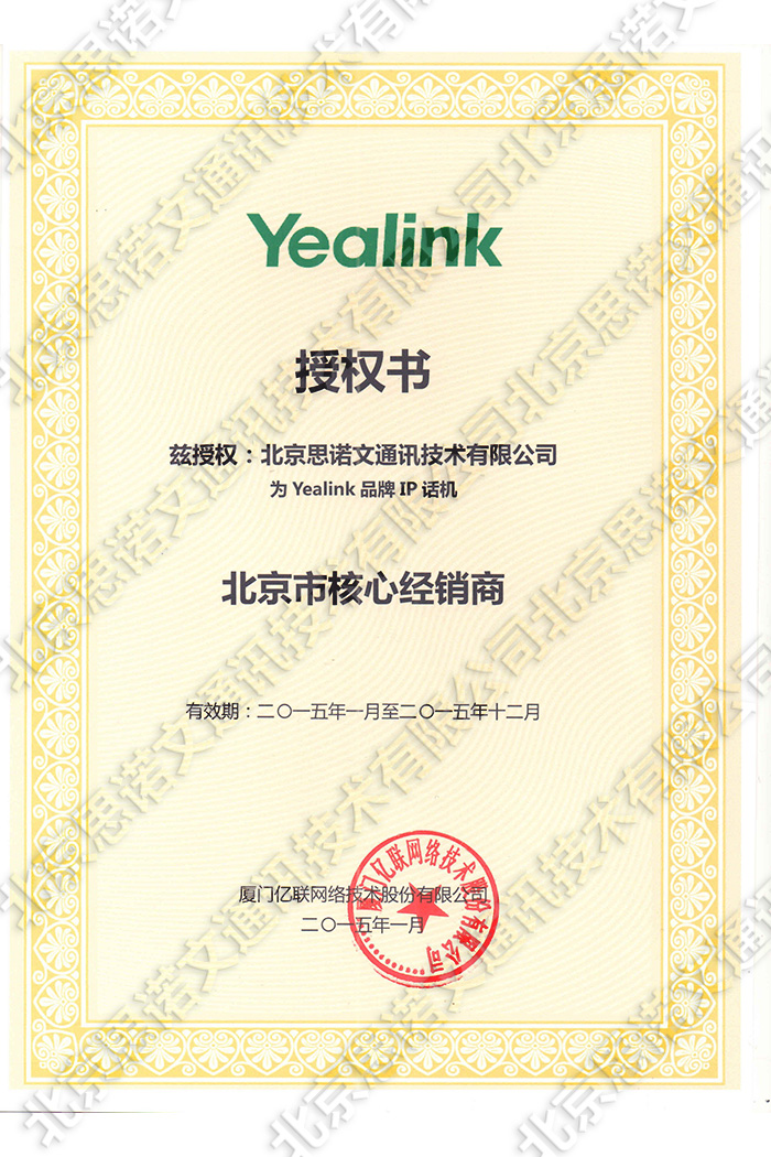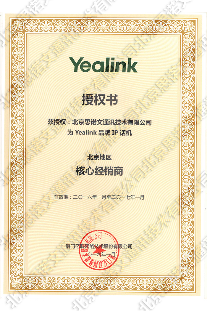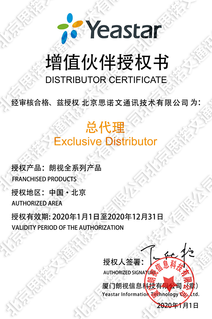 北京思諾文通訊技術(shù)有限公司是億聯(lián)網(wǎng)絡(luò)Yealink(股票代碼300628)音、視頻產(chǎn)品北京區(qū)域總代理,星縱|朗視Yeastar IP PBX北京總代理,迅時(shí)Newrocktech品牌北京地區(qū)總經(jīng)銷。 公司負(fù)責(zé)相關(guān)產(chǎn)品渠道分銷工作,提供售前和售后支持,我們將竭誠為您服務(wù)。