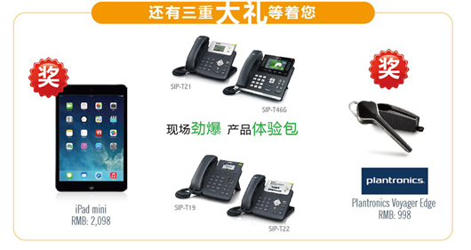 除了零距離的溝通、交流與體驗,億聯(lián)還為來賓精心準備了IPAD mini、Plantronics耳機、億聯(lián)T46G話機等勁爆產(chǎn)品,現(xiàn)場更有兩套億聯(lián)產(chǎn)品超值體驗包供來賓選擇,精彩不容錯過!